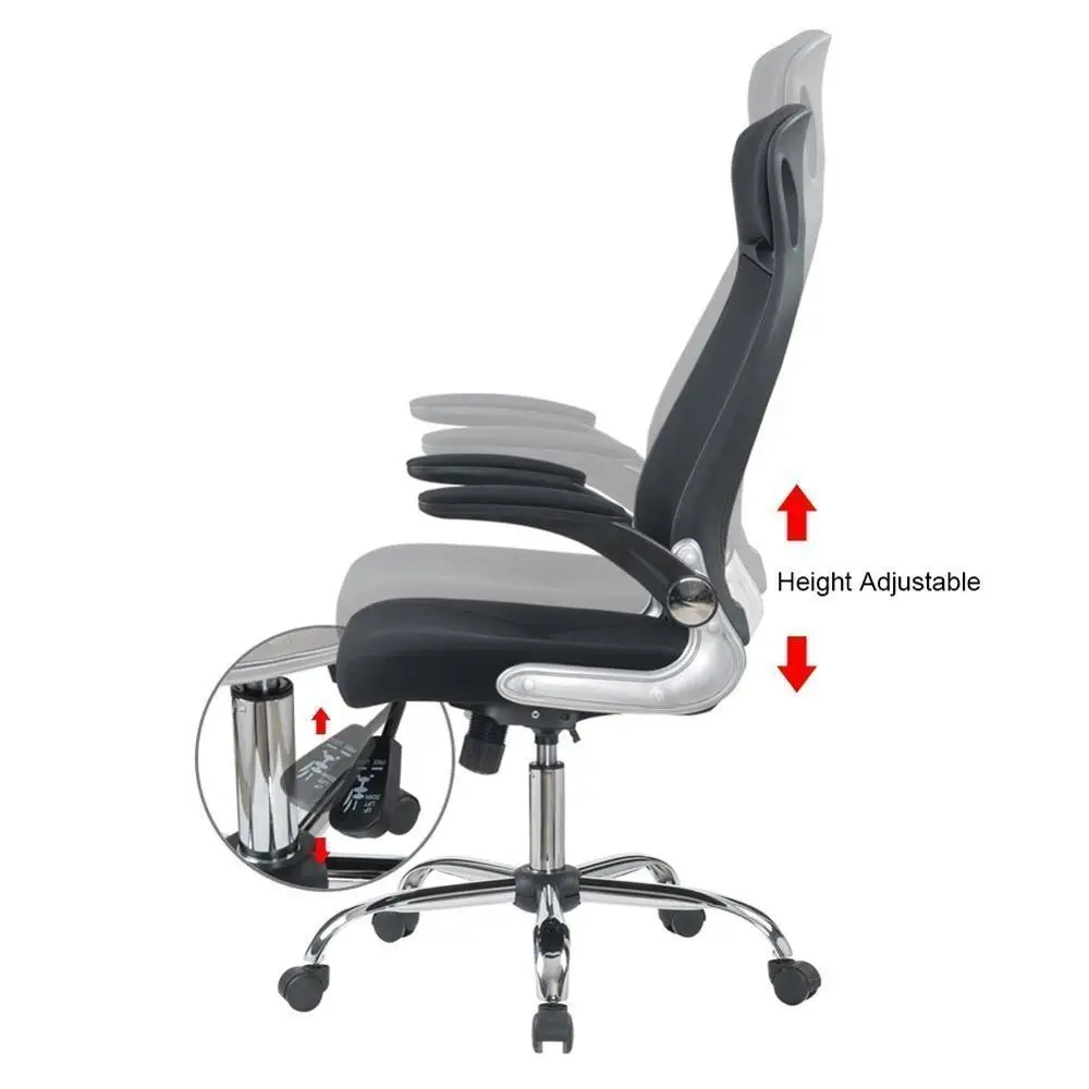 Cheap Office Chair Black Swivel Mesh Computer Ergonomic Chair High Back With Foldable Armrest Head Suppor