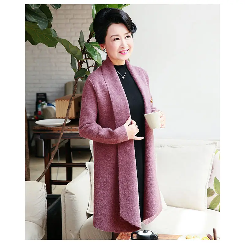 Cheap Women Sweater Cardigan Knitted Long Cardigan Coat For Mom Autumn Fashion Elegant Solid Knitwear Jac