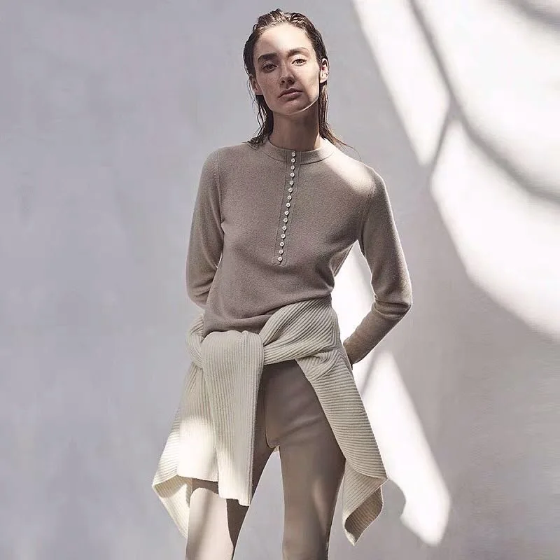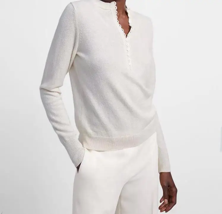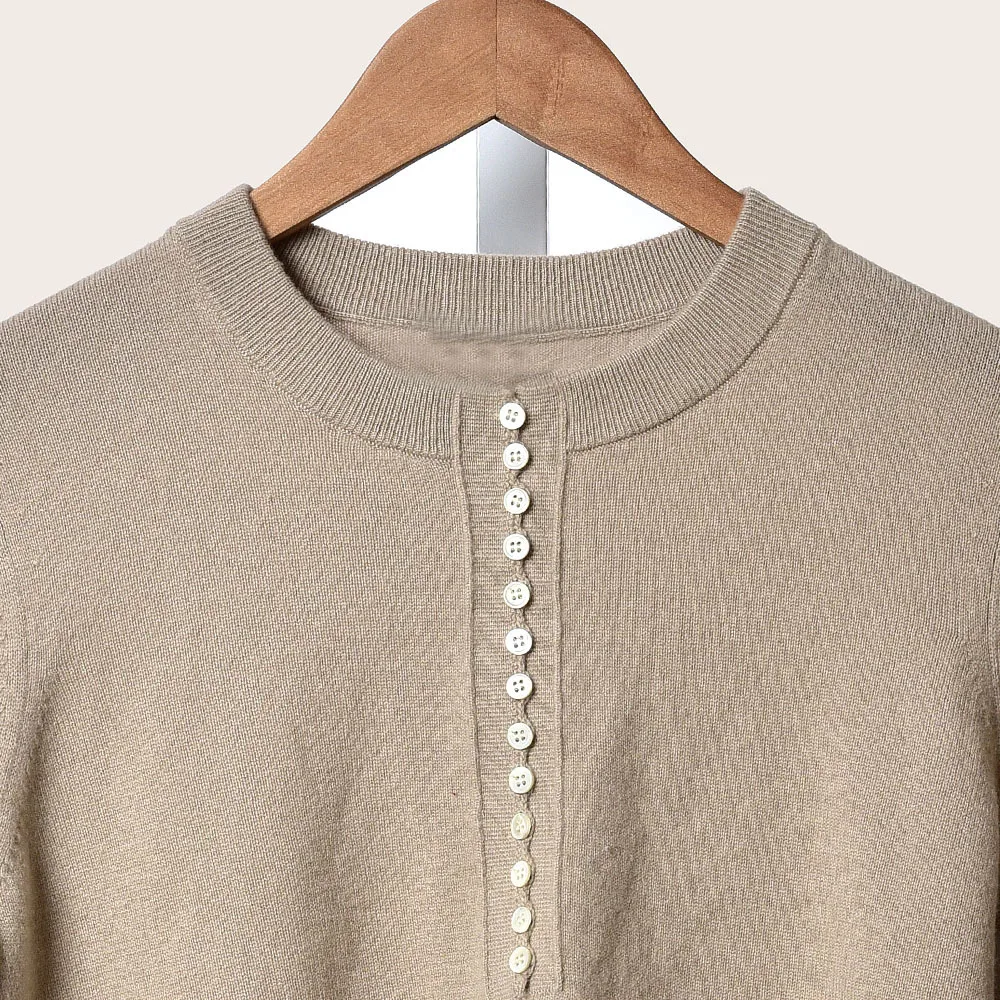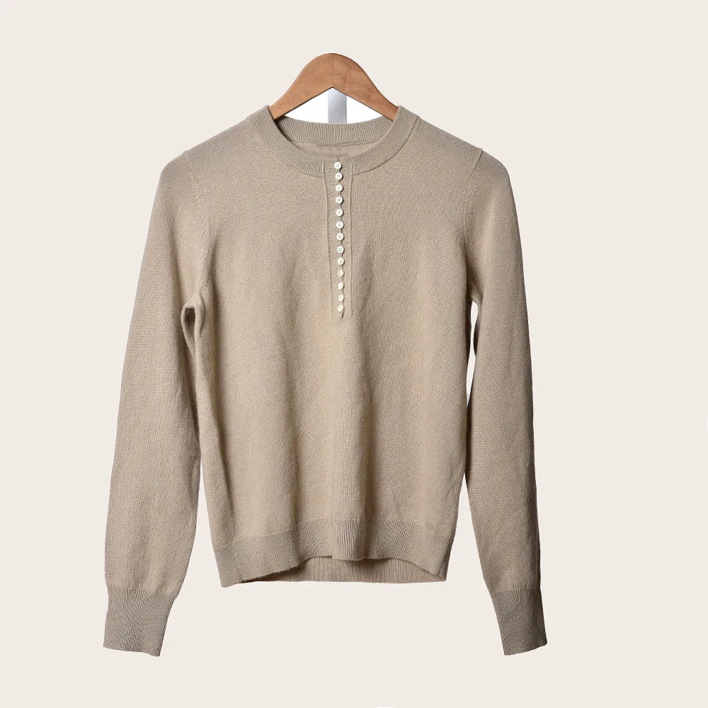 Discount 2020 spring and summer temperament elegant wool buckle cuff Slim thin knit sweater women