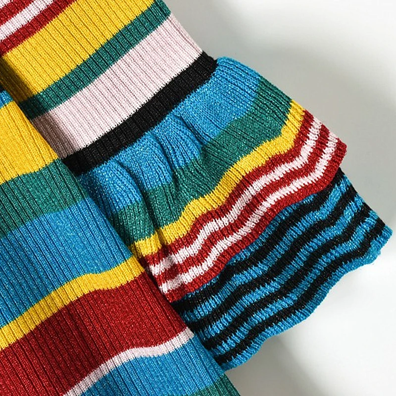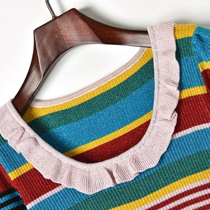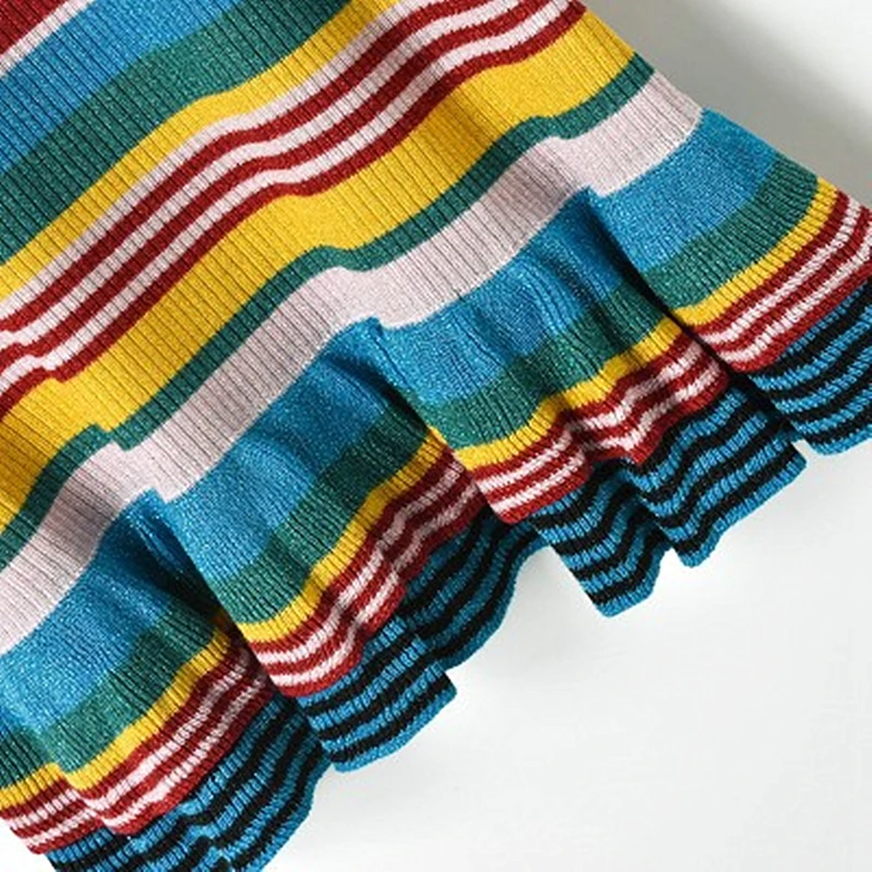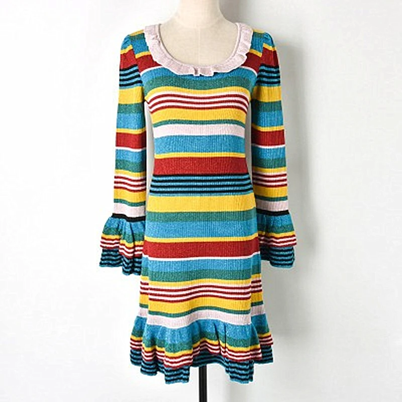 Belum ada Komentar untuk "Hot Product 2018 New Contrast Color Striped Gold Lace Ruffled Knit Skirt Knit Ruffled Sleeve Dress Round Neck F"