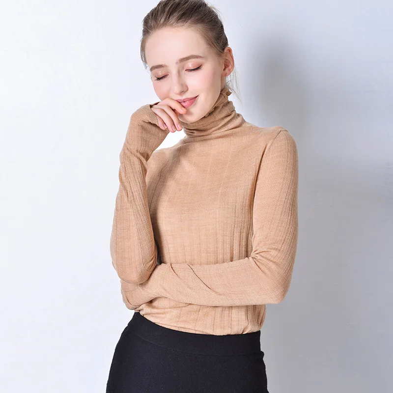 New Arrival beige wool sweaters women high turtleneck fem me jumper Korean style pullover 2019 autumn winter cl