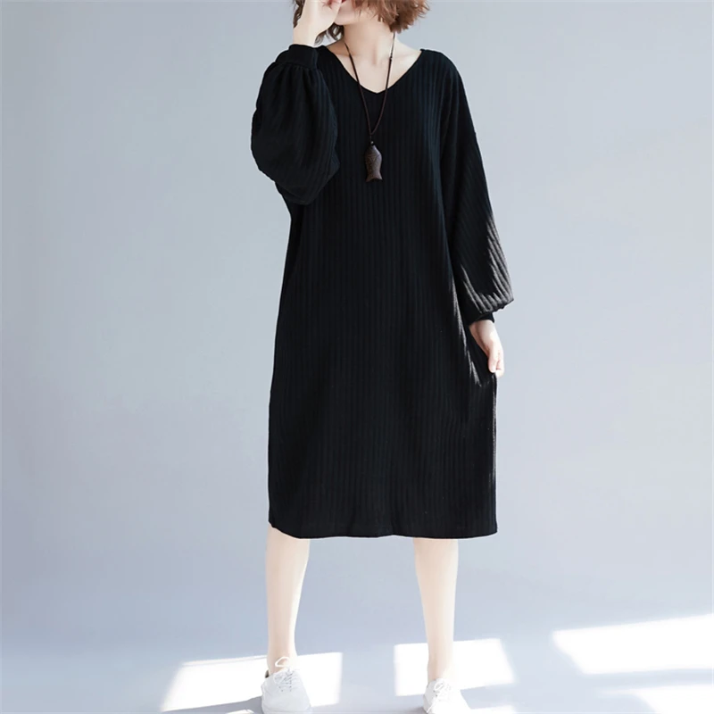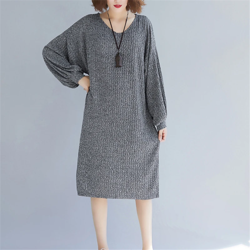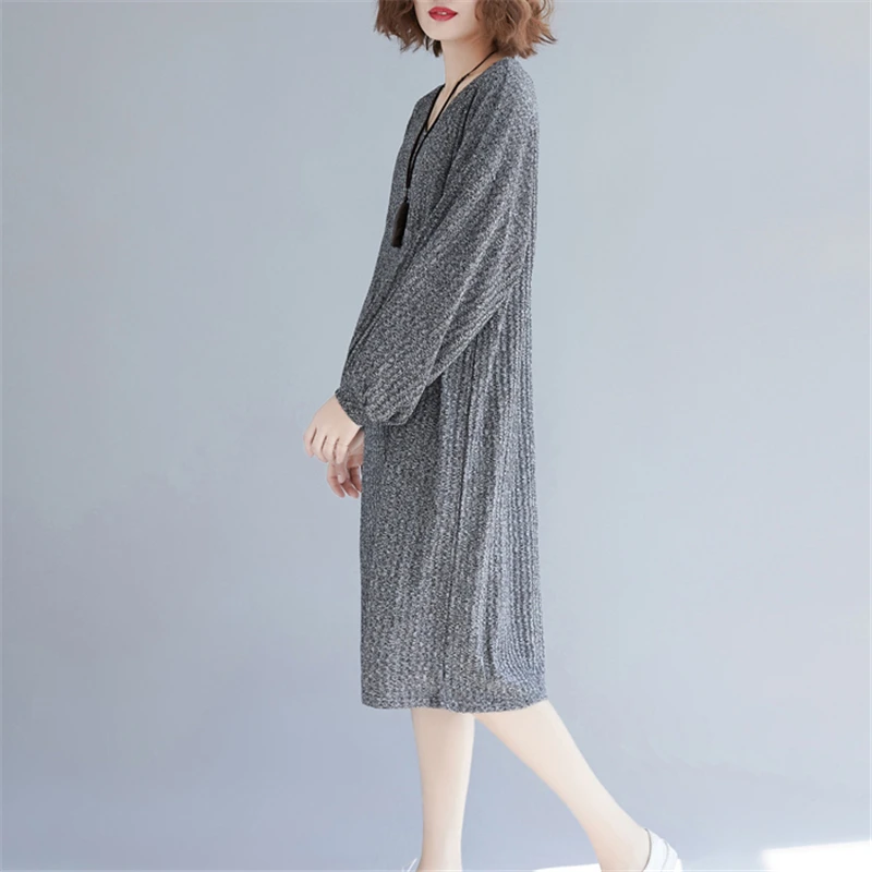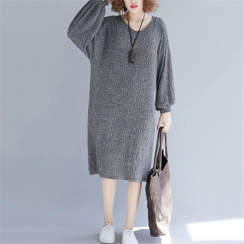 Big Discount Spring New Large Size Women Sweater 2019 Long Loose Knit Dress Autumn V-Neck Oversized Pullover Fas