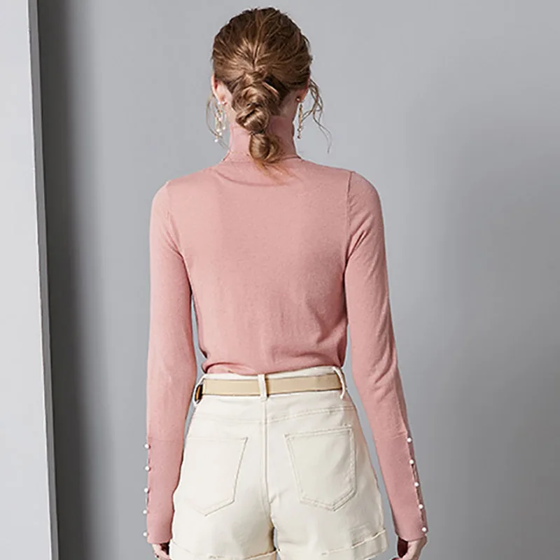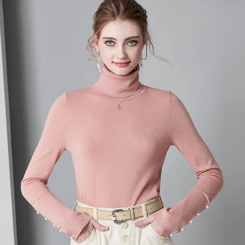 Buy Autumn And Winter The New Sweater Office style Beading Long sleeve Slim Turtleneck Women's Sweater