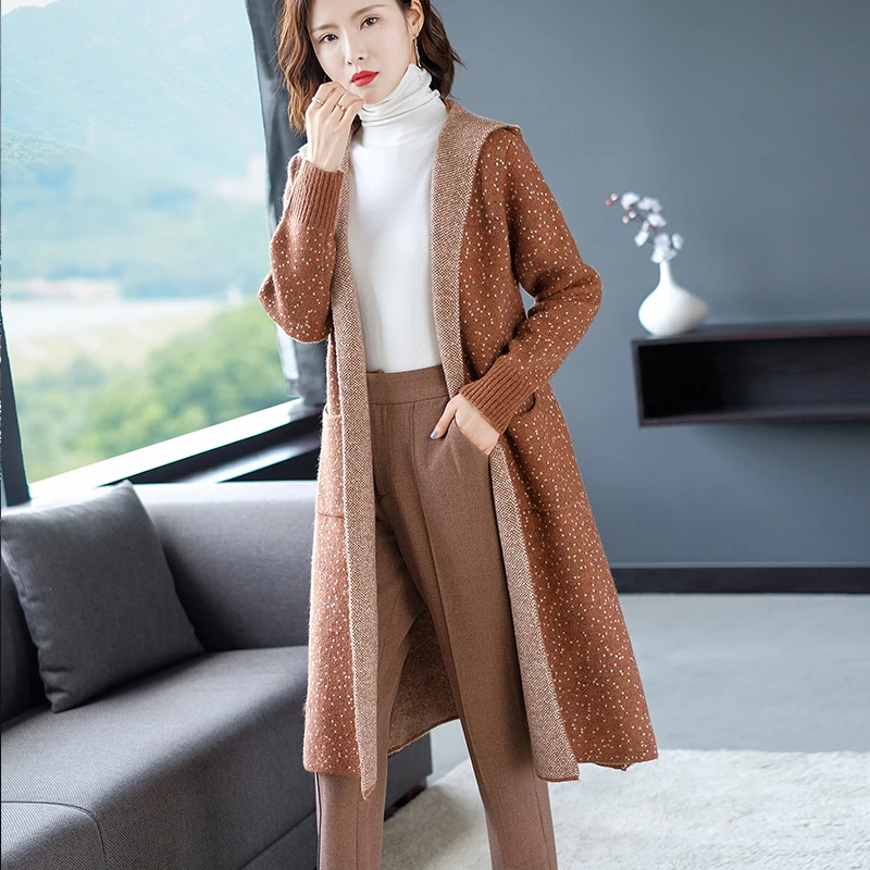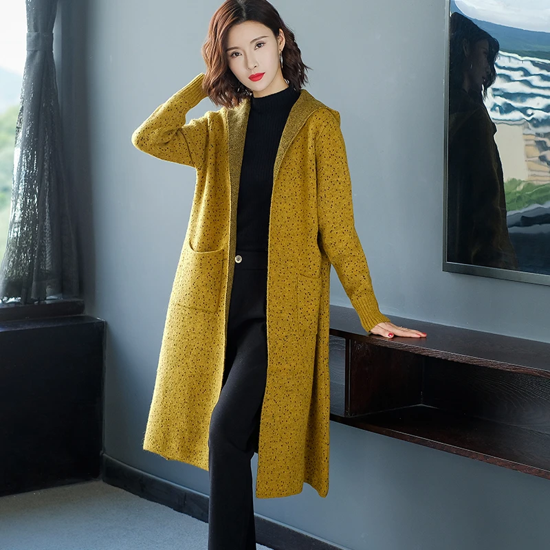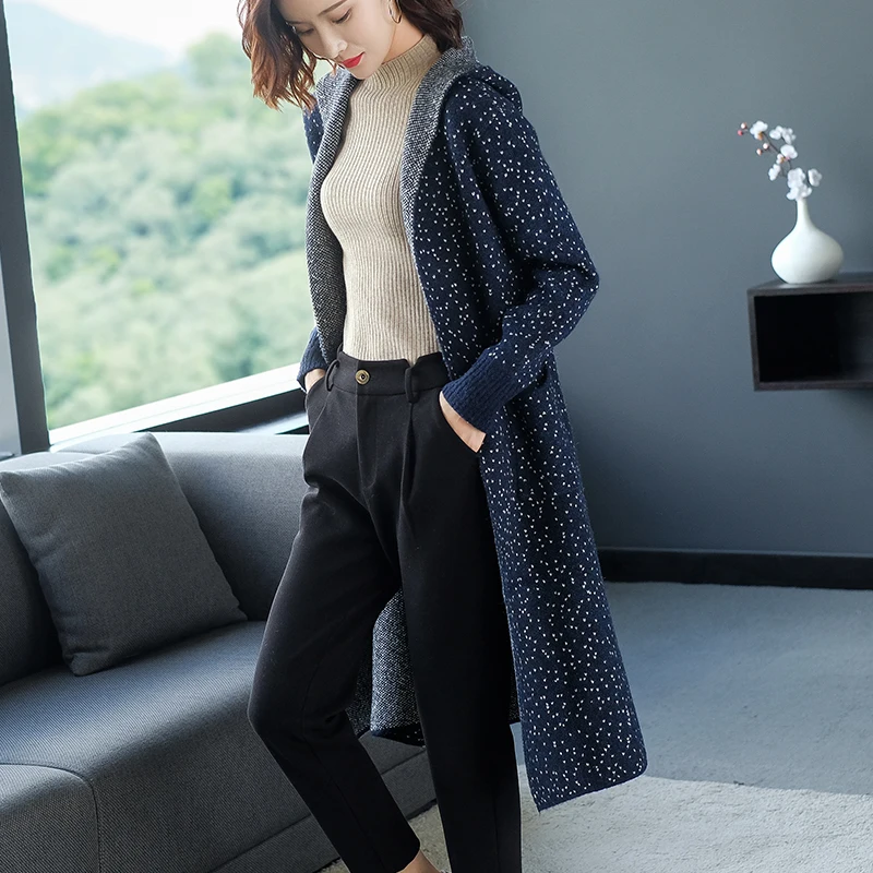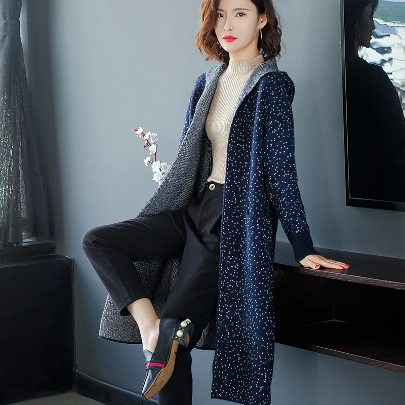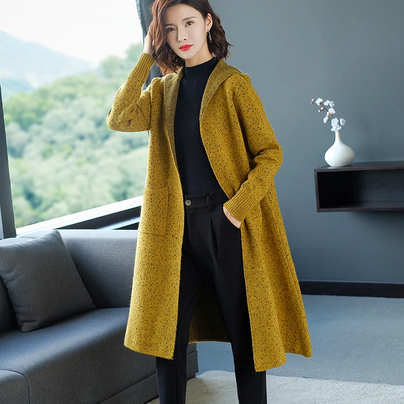 Hot Promo New Spring Autumn Hooded Coat Women Knitted Sweater Cardigan Casual Elegant Winter Jacket Korean Lo