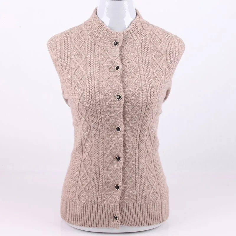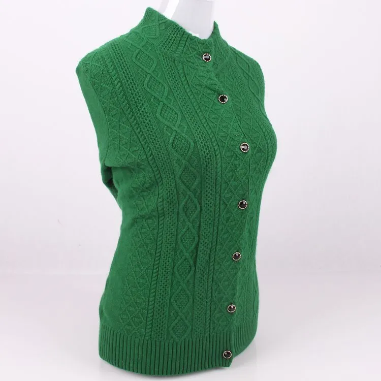 Cheap 100%cashmere twisted knit women cardigans sweater single breasted M-4XL large size stand collar