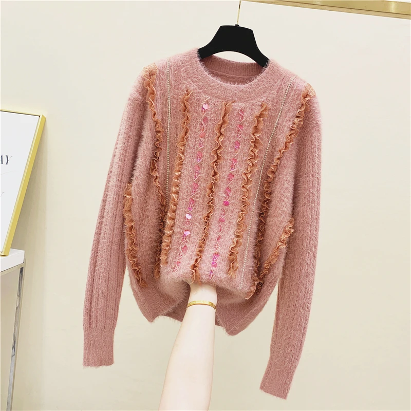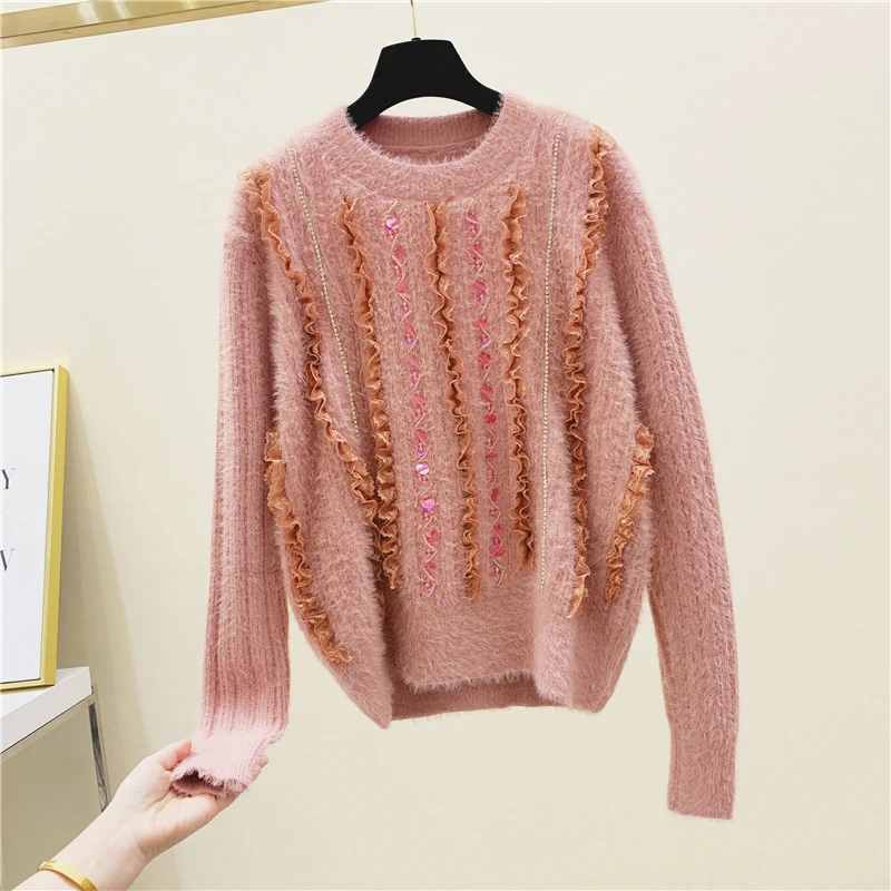 Discount 2020 Spring Winter Sweater Women's Loose-Fit Outer Wear Retro Lazy Wind Sequined Fairy Sweater Jack