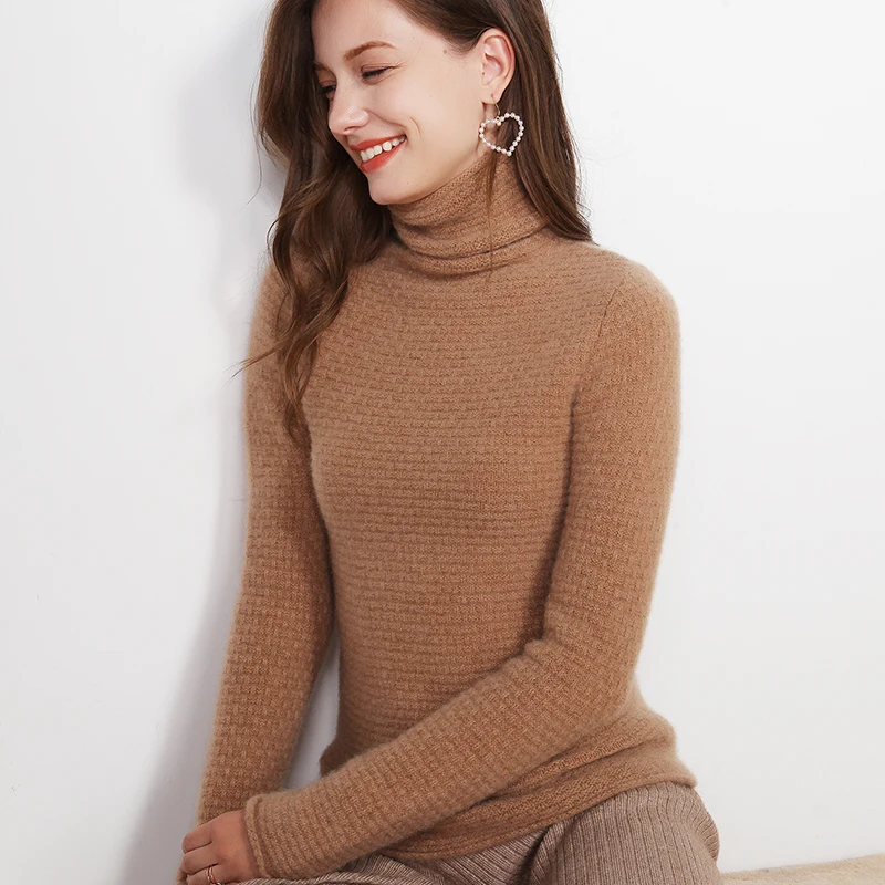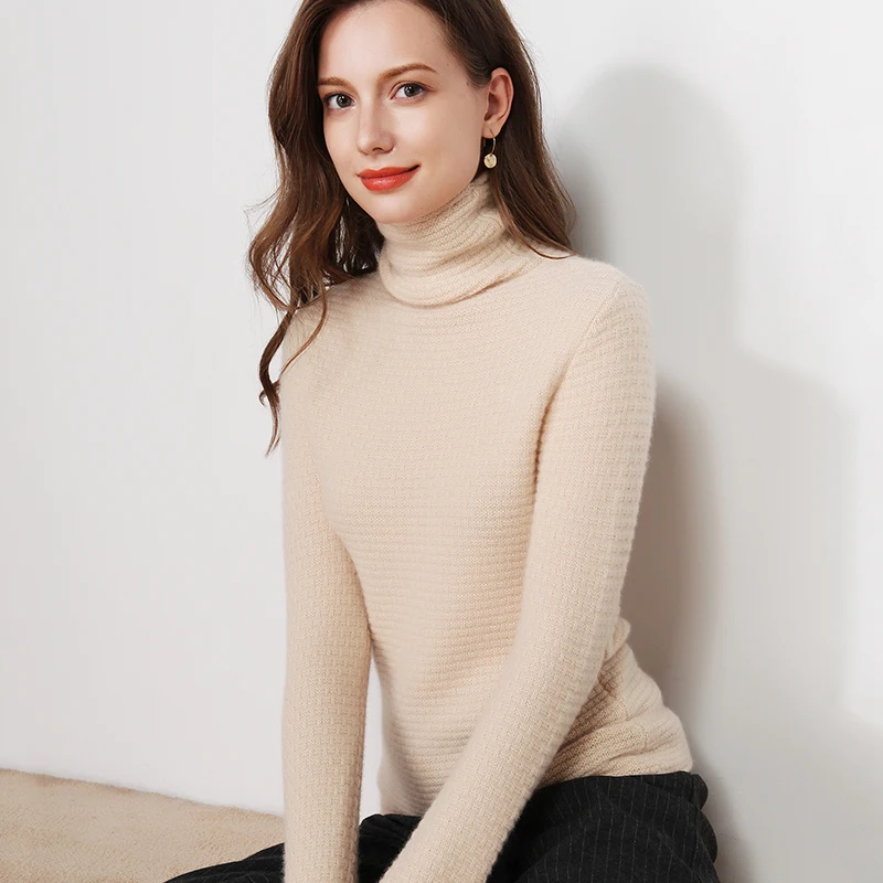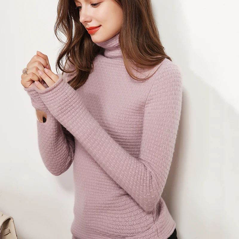 Hot Product LHZSYY 2019Autumn Winter New Women' High Collar 100%Pure Wool Sweater Fashion Slim Short Pullover H