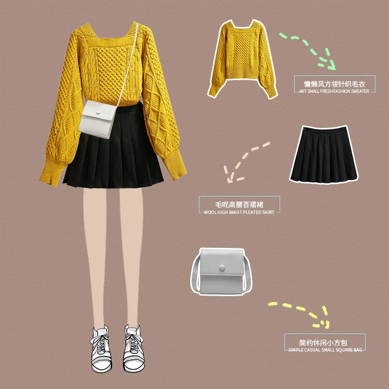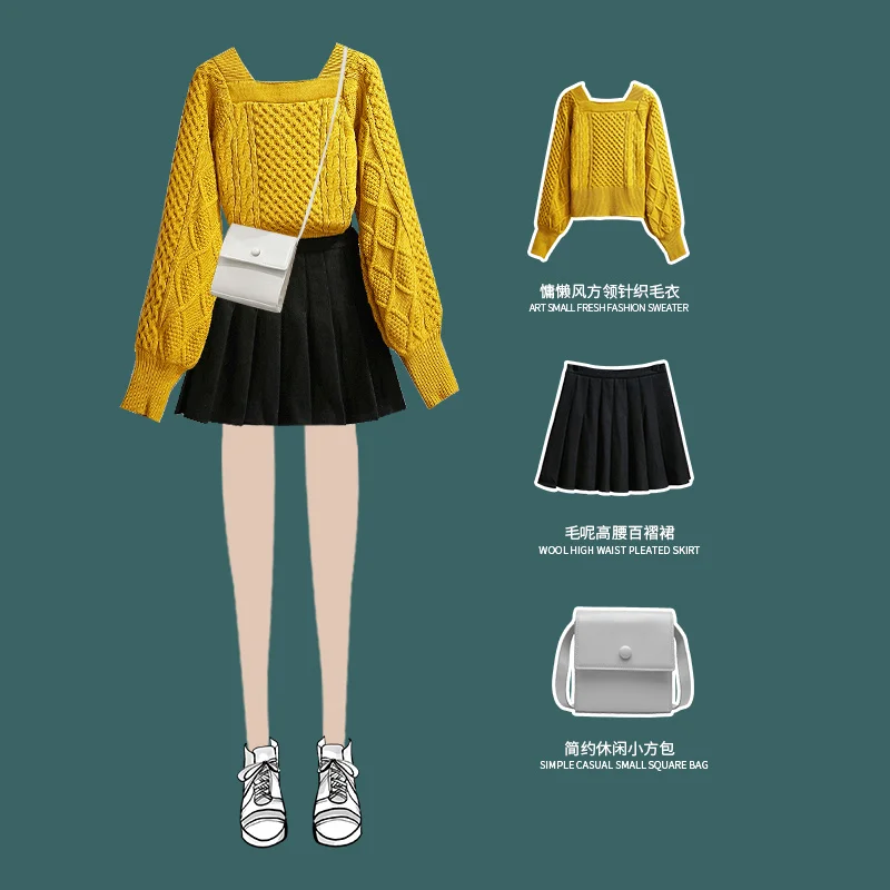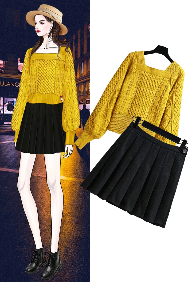 Hot Product Sweater skirt suit female autumn and winter wear with sweater two-piece winter sweater women