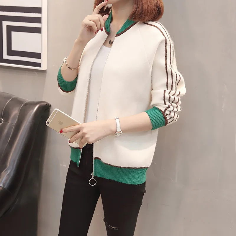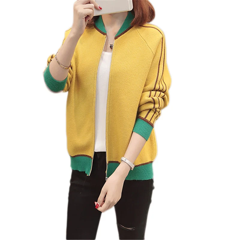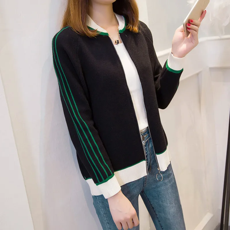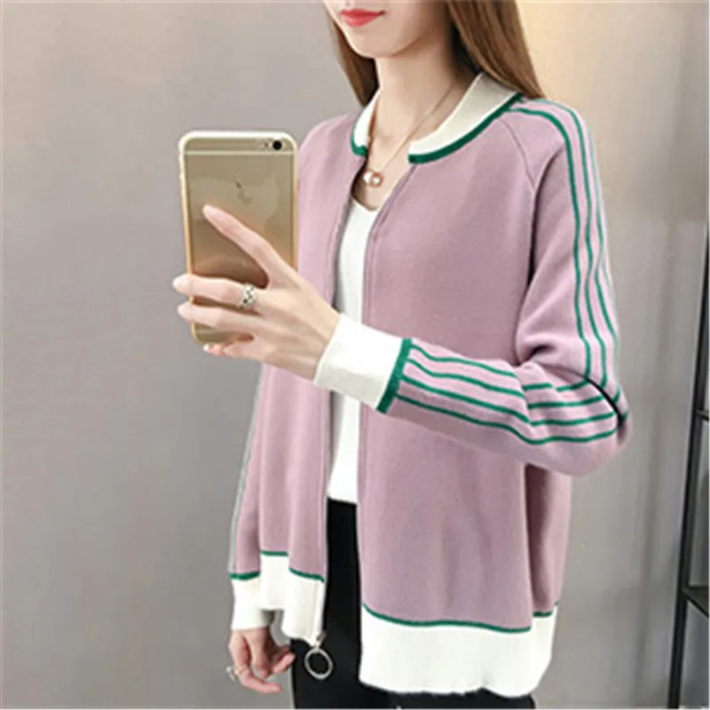 Best Price 2019 New Women Sweater Spring Autumn Round Neck Cardigan Loose Solid Color Knitwear Casual Zipper L