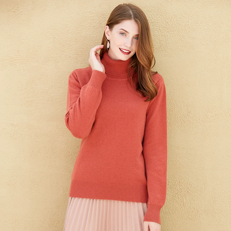 Hot Product Autumn and winter high lapel cashmere sweater female 100% cashmere pullover sweater bottoming sweat