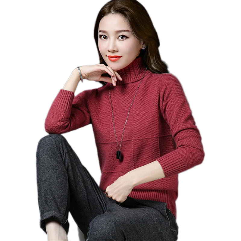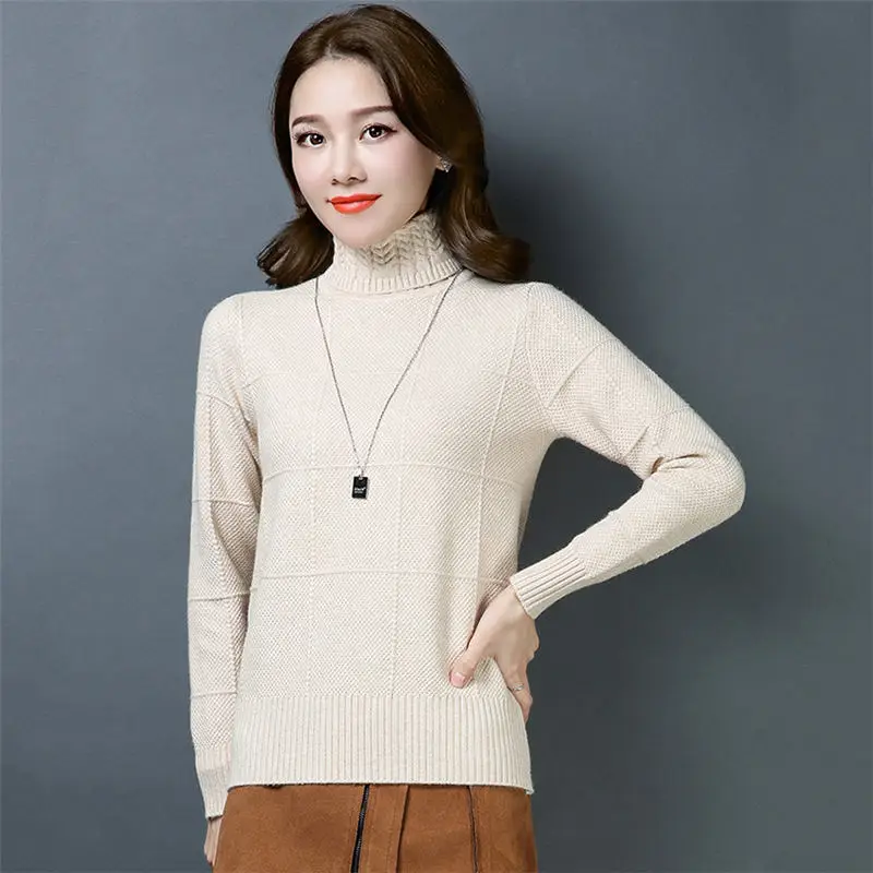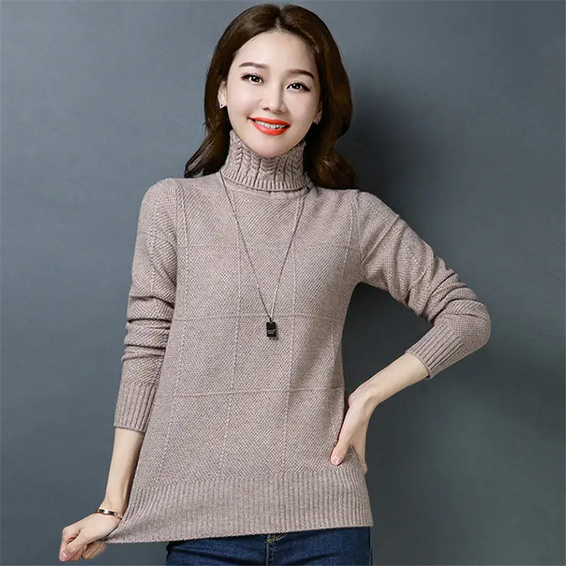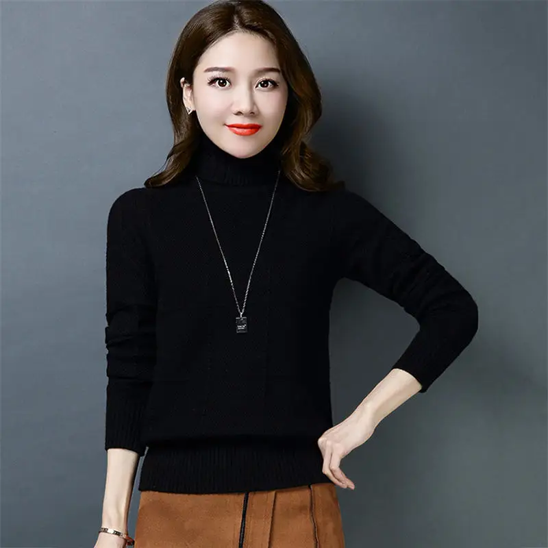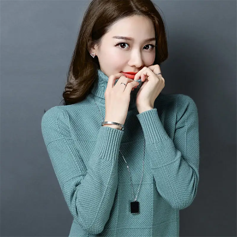 Discount High Collar Women Knitted Wool Spring New Temperament Solid Color Pullover Warm Bottoming Knitwear