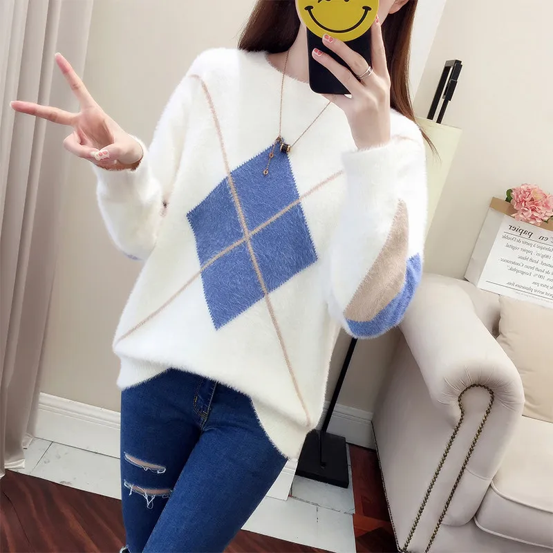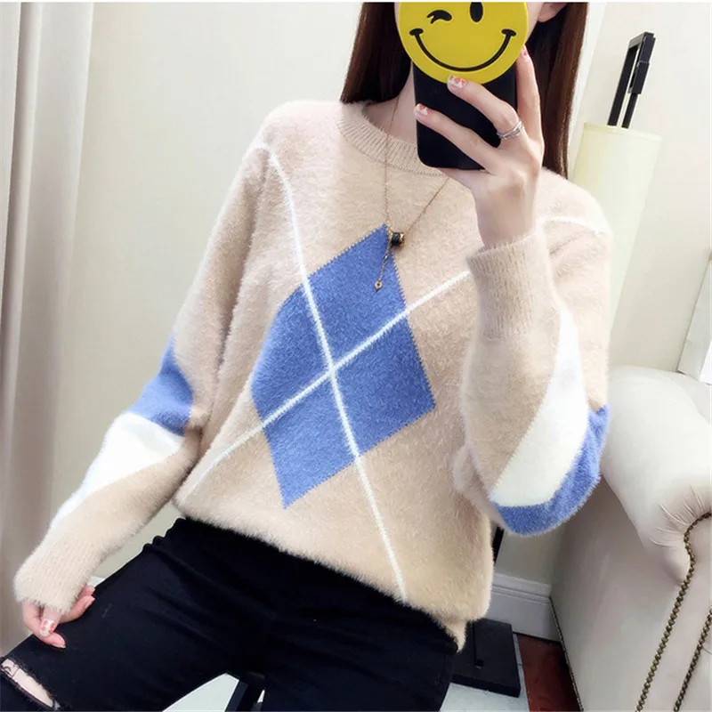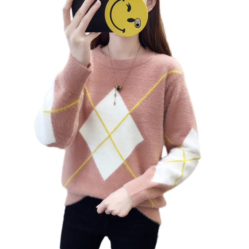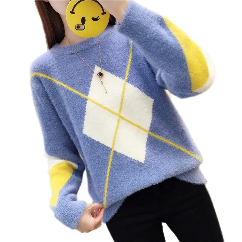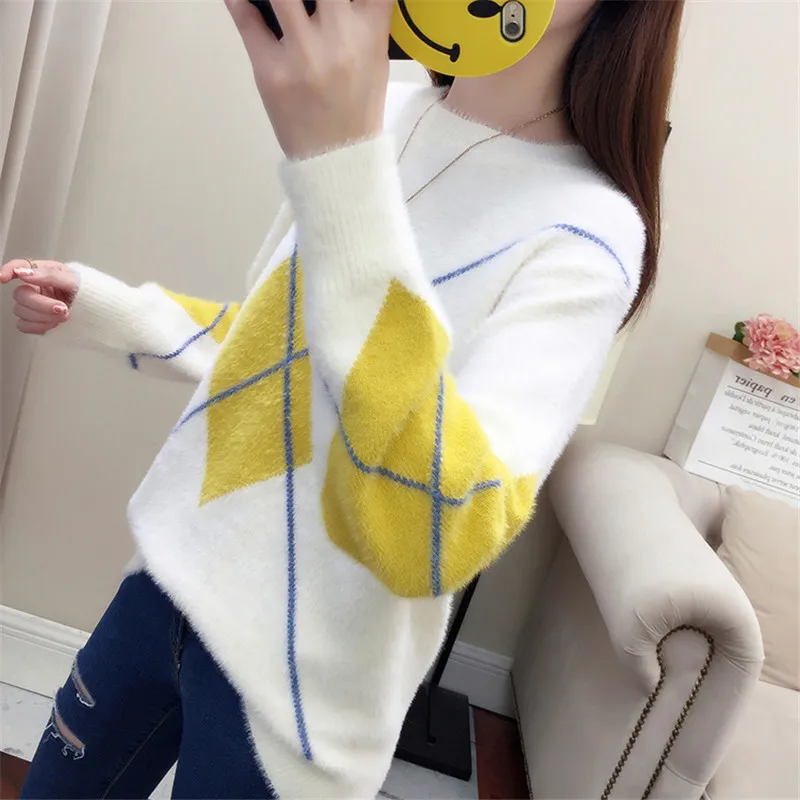 New Arrival Women Sweater Spring Autumn 2019 Round Neck Color Matching Knit Short Paragraph Loose Female Sweate