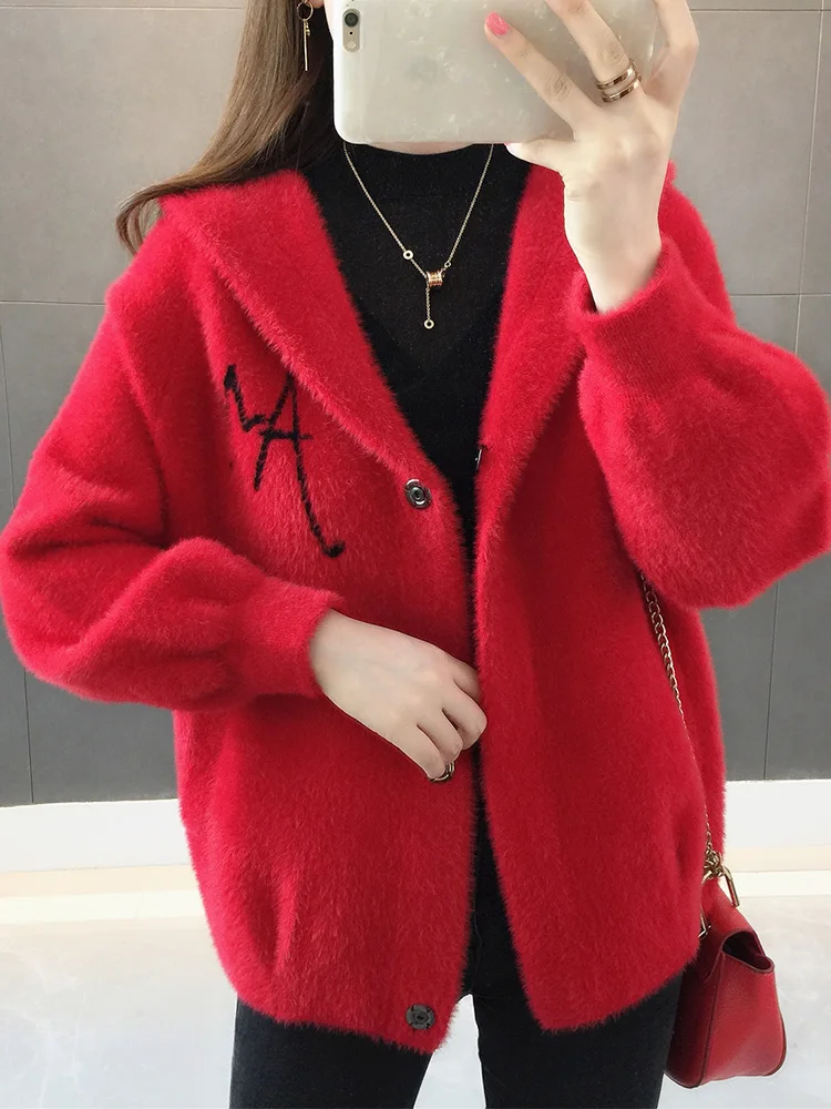 Promo Autumn dress 2019 new style imitation mink velvet net red sweater cardigan early autumn sweater jac