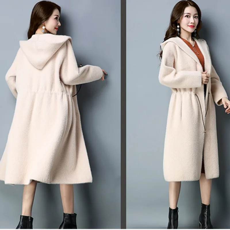 Hot Product UHYTGF S-5XL High quality Waterproof Mink cashmere Sweater Coat Winter Women Sheep sheared hooded S
