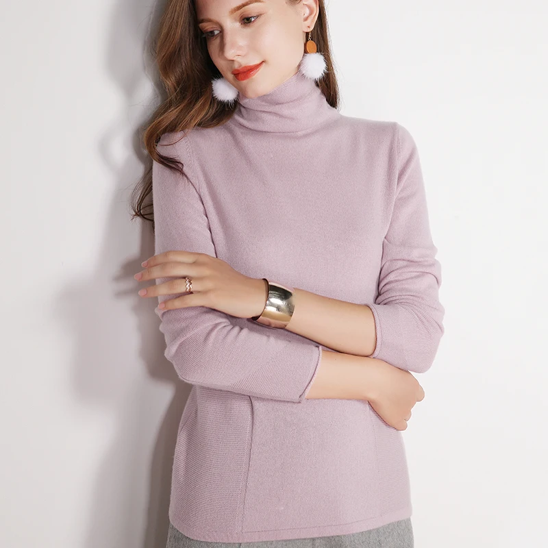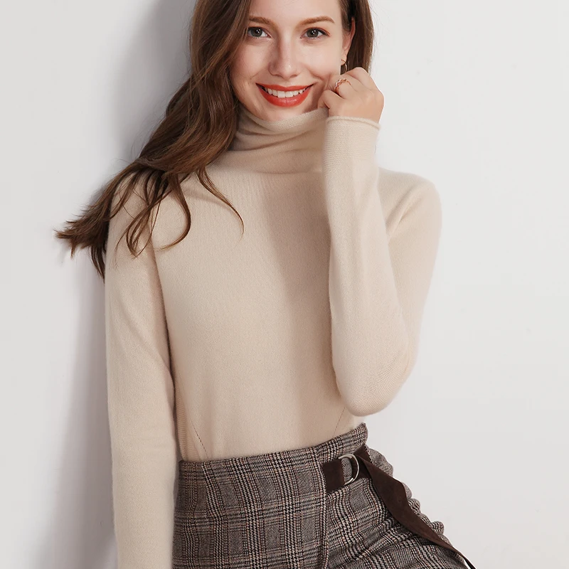 Big Discount LHZSYY 2019Autumn Winter New Women's High Collar 100%Pure WOOL Sweater Slim fit Wild Bottoming Shir