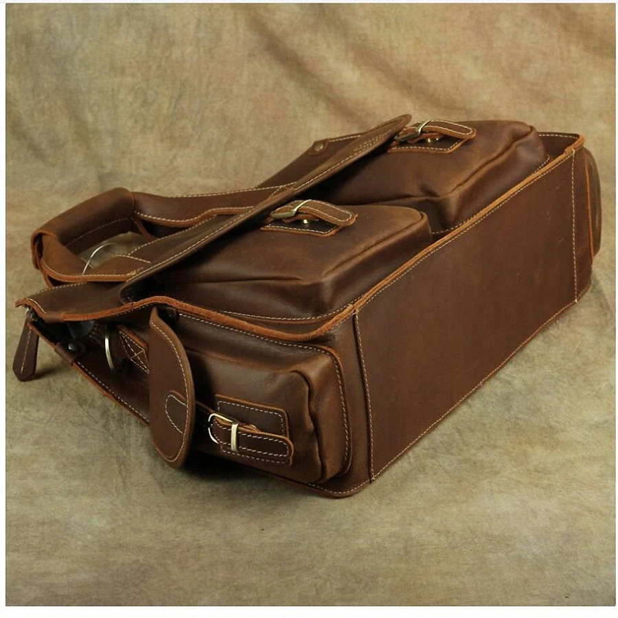 Big Discount Top Grade Male Men's Vintage Real Crazy Horse Leather Briefcase Messenger Shoulder Portfolio Laptop