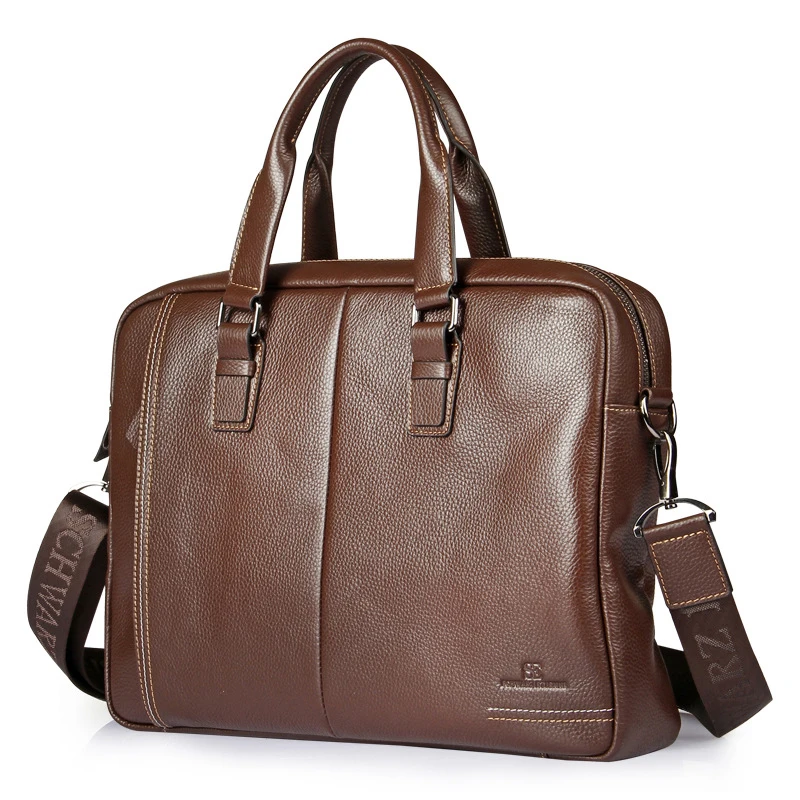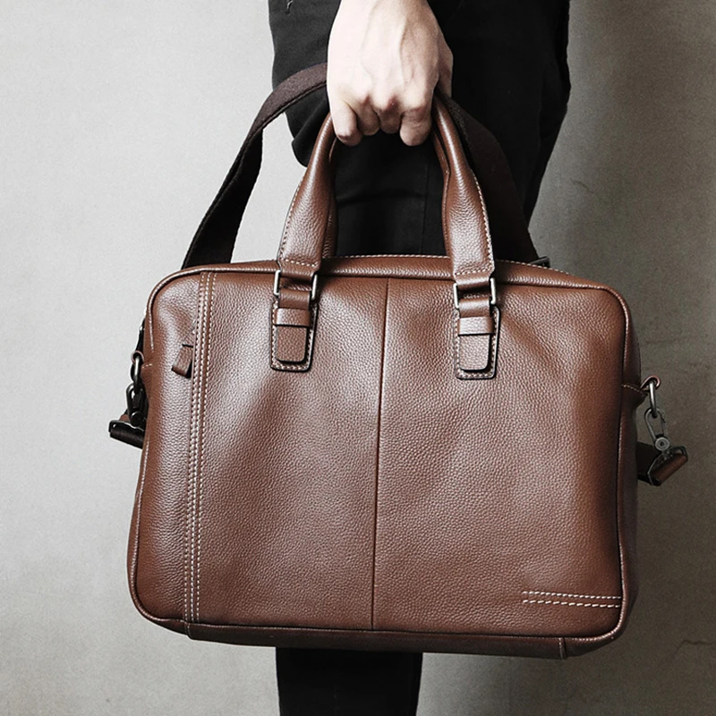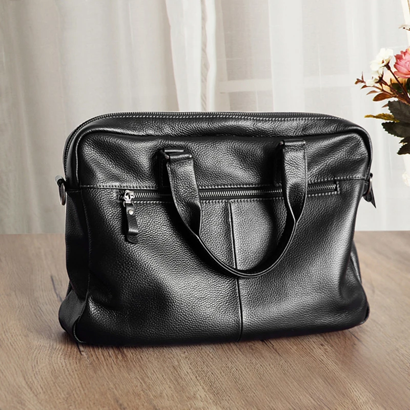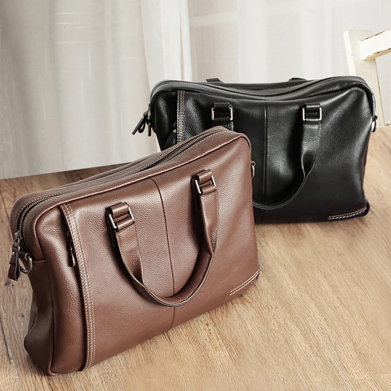 Big Sale Men's New Hot Genuine Leather Retro Business Office Travel Computer Bag Solid Color Handsome Busine