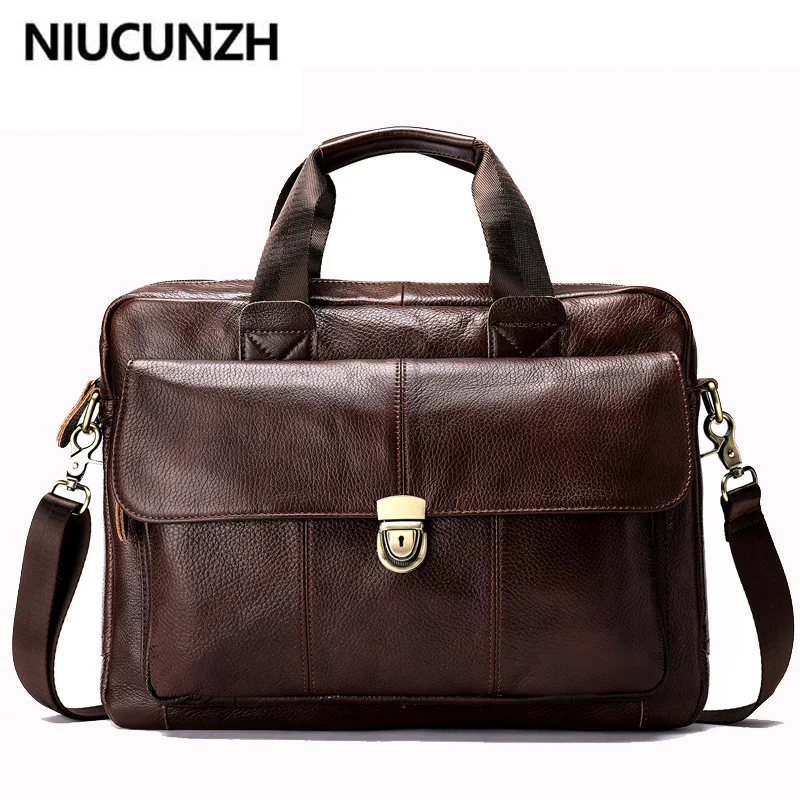 Promo NIUCUNZH Men's Briefcase Male Genuine Leather Men Bags Messenger Leather Laptop Bag Office Bag for