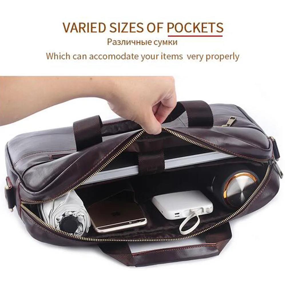 Hot Promo Men's Briefcase Men's Bag Genuine Leather Laptop Bag Leather Computer/Office Bags for Men Document